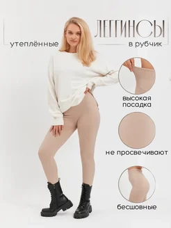 Леггинсы утепленные лосины с высокой посадкой в рубчик