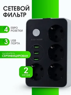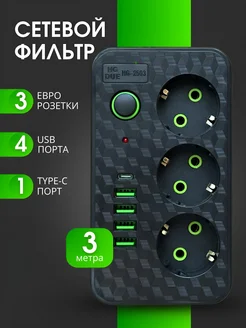 Сетевой фильтр 3 метра удлинитель с USB и Type-c