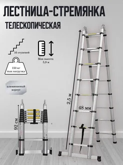 Телескопическая лестница-стремянка 2 5м 5м 8 на 8 ступ