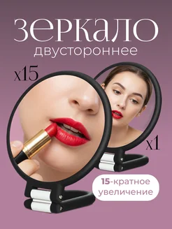 Зеркало двухстороннее с увеличением 15х для макияжа