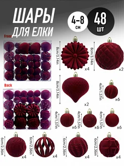 Бархатные шары елочные 48 шт новогодние для елки нового года