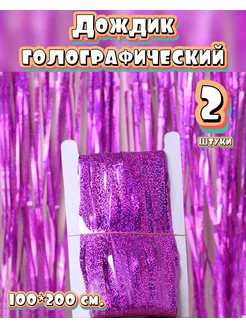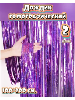 Дождик для фотозоны голографический Ярко фиолетовый 2 шт
