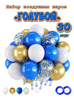 Воздушные шары Голубые с золотом 30 шт
