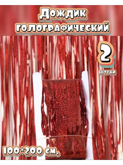 Дождик для фотозоны голографический Красный 2 шт