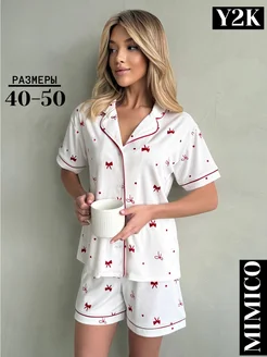 Пижама оверсайз с шортами и рубашкой y2k