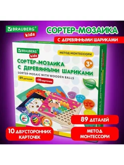 Сортер-мозаика с деревянный шариками, развивающий, 3 в 1, по