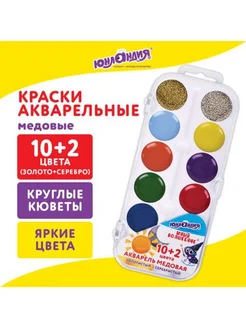 Краски акварельные 3 шт. "ЮНЫЙ ВОЛШЕБНИК", медовые, 10+2 цв