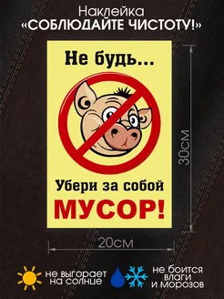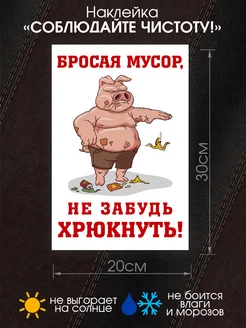 Наклейка "Соблюдайте чистоту" пленка + УФ-печать 30х20см