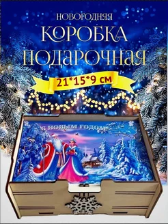 Коробка подарочная новогодняя с наполнителем с гирляндой