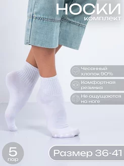 Носки высокие белые набор 5 пар, хлопок спортивные