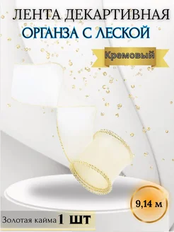 Лента декоративная, Золотая кайма, Кремовый, 9,14 м