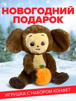 Новогодний подарок с конфетами, мягкая игрушка Чебурашка