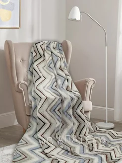Плед 180х200 см на кровать и диван велсофт Зигзаг