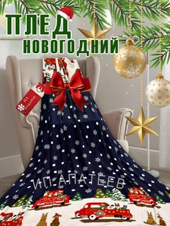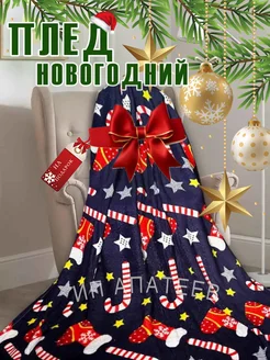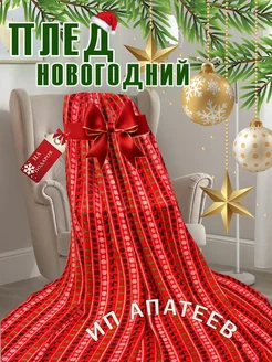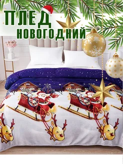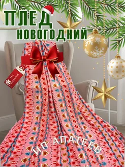 Плед новогодний 180х200 см на кровать и диван велсофт