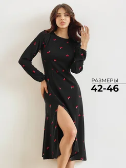 Платье футляр летнее в цветочек с разрезом