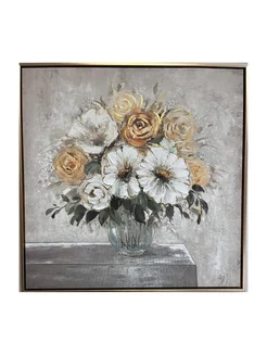 Картина в рамке 60*60 см. Цветы частично Ручная работа