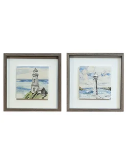 Модульная картина постер в рамке 30*30 см. Маяк и Море 2 шт