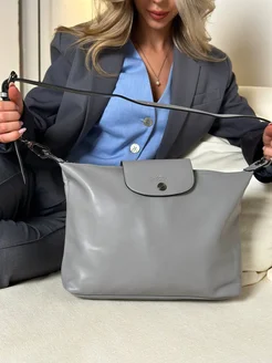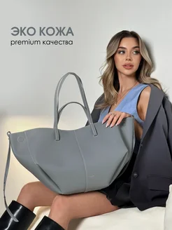 Сумка тоут серая кожаная на плечо