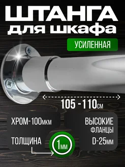 Штанга в шкаф и гардеробную для вешалок с креплением 105 см