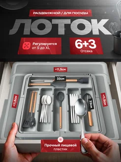 Лоток органайзер для столовых приборов в ящик раздвижной