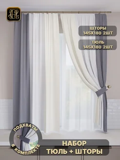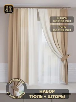 Шторы для гостиной и в спальню с тюлем 145х240 2 штуки