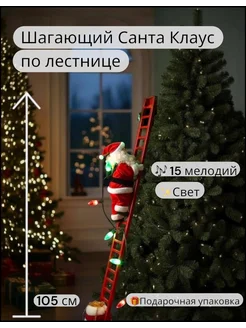 Дед Мороз Санта на лестнице поднимается музыкальный