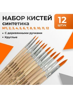 Набор кистей нейлон 12 штук № 1 2 3 4 5 6 7 8 9