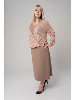 Комплект кофта нарядная с пайетками и платье бежевое