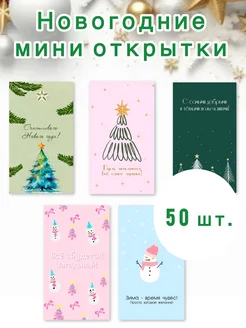 Новогодние мини открытки 6х6 30 шт бирки С новым годом