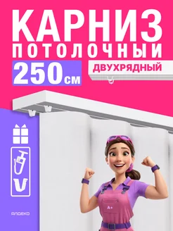 Карниз потолочный 250 см двухрядный для штор с подарком