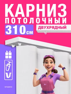 Карниз потолочный 310 см двухрядный для штор с подарком