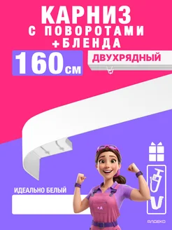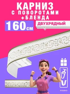 Карниз потолочный с поворотом и блендой 160 см двухрядный