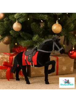 Лошадка чёрная 15см. с седлом и уздечкой символ 2026 года