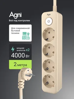 Удлинитель Сетевой фильтр 2 метра 4 розетки