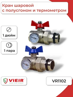 Кран шаровой с полусгоном и термометром 1'' VR1102 пара