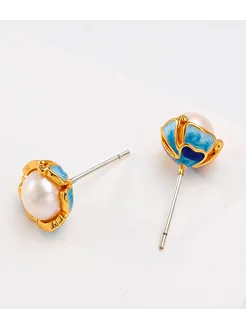 Серьги-гвоздики "Жемчужный Лотос" с эмалью