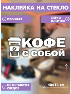 Наклейка на стекло Кофе с собой ПВХ-винил белая