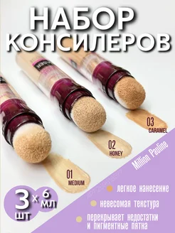Набор консилеров с пуховкой для лица и глаз 3 шт