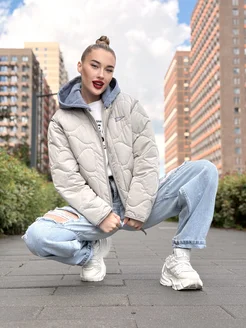 Куртка утепленная оверсайз с двойным трикотажным капюшоном