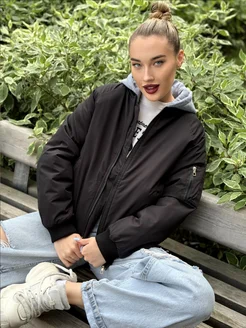 Бомбер легкий оверсайз c капюшоном