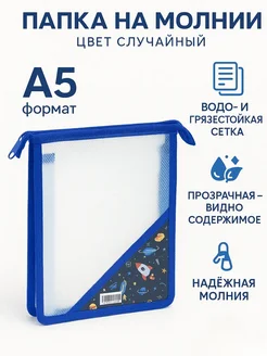 Папка-конверт A5 прозрачная с молнией для мальчиков