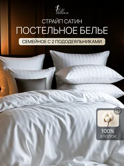 Постельное белье семейное с 2 пододеяльниками страйп сатин