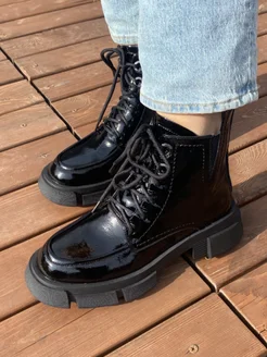 Кожаные лакированные ботинки берцы на платформе демисезонные