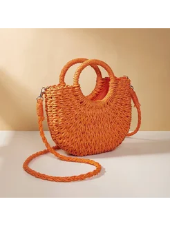Плетеная сумка из джута с круглой ручкой и длинным ремешком