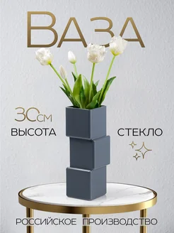 Ваза для цветов и сухоцветов стеклянная интерьерная 30 см