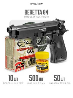 Пистолет пневматический S92ME, шарики, СО2, мишени