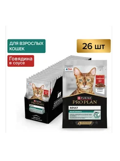 Влажный корм для кошек с говядиной в соусе, 26 шт