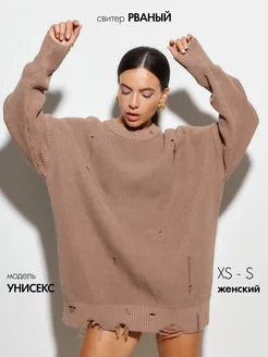 Свитер рваный оверсайз вязаный с дырками
