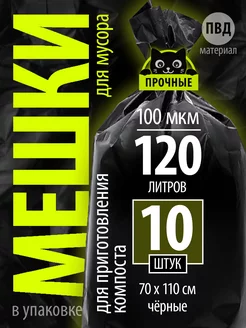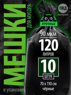 Мешки для мусора, 120 л, 10 шт, ПВД, 100 мкм, 70х110см