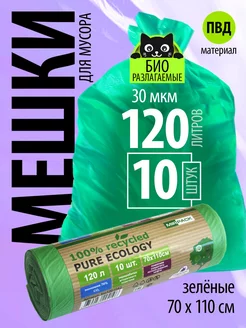 Мешки мусора биоразлагаемые, 120 л, 30 мкм, 10 шт, 70х100 см